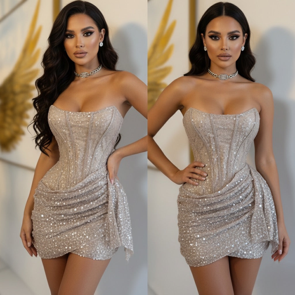 Vestido champagne perlas y lentejuelas ✨