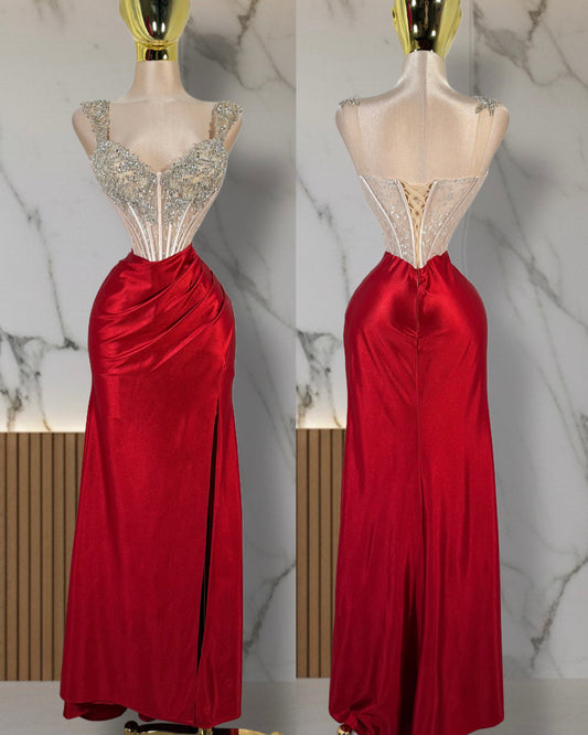 Vestido rojo pedrería corset ❤️✨