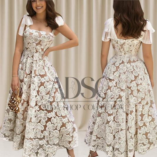 Vestido champagne flores 3D
