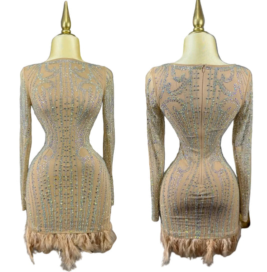 Vestido nude pedrería y plumas ✨