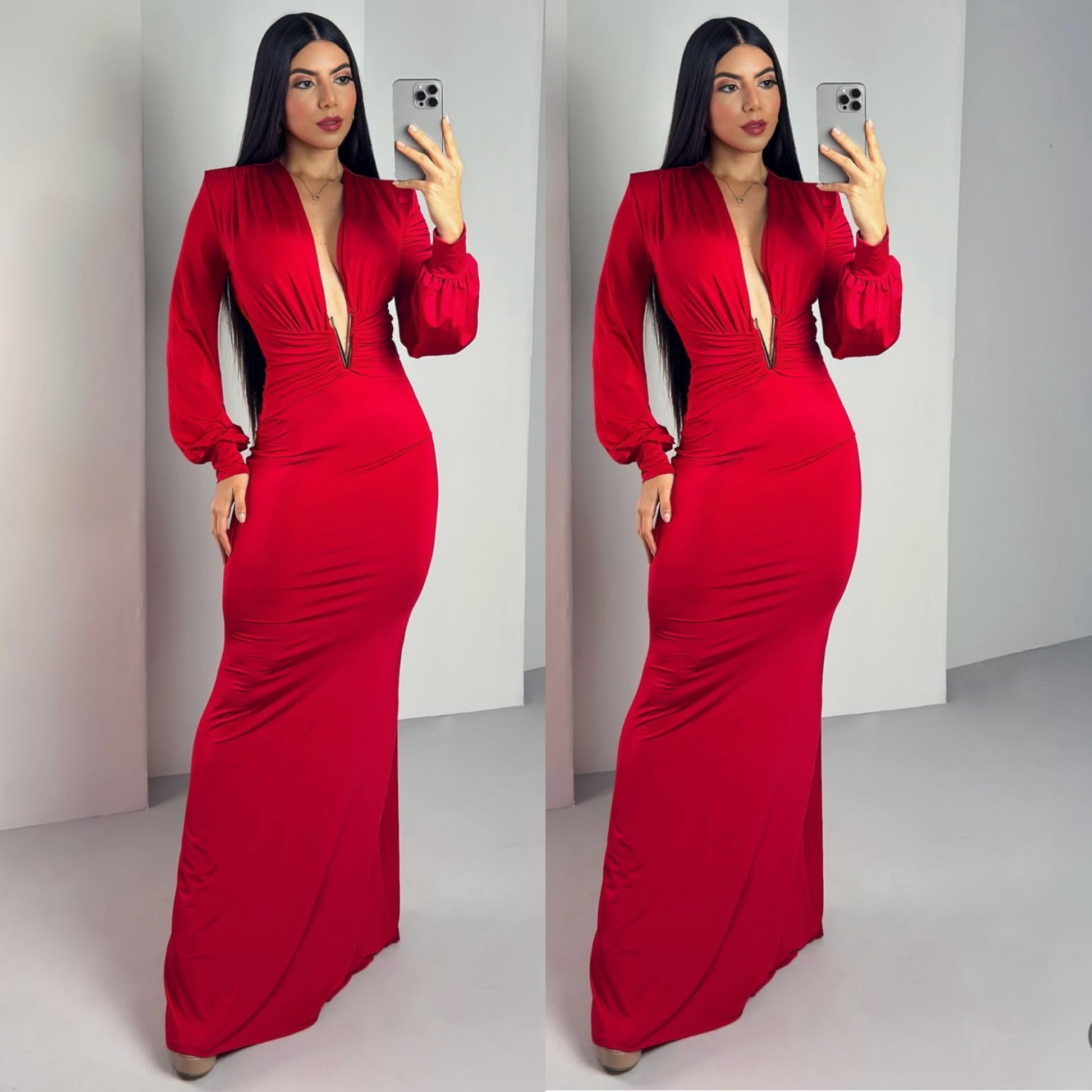 Vestido rojo licra escote V ❣️