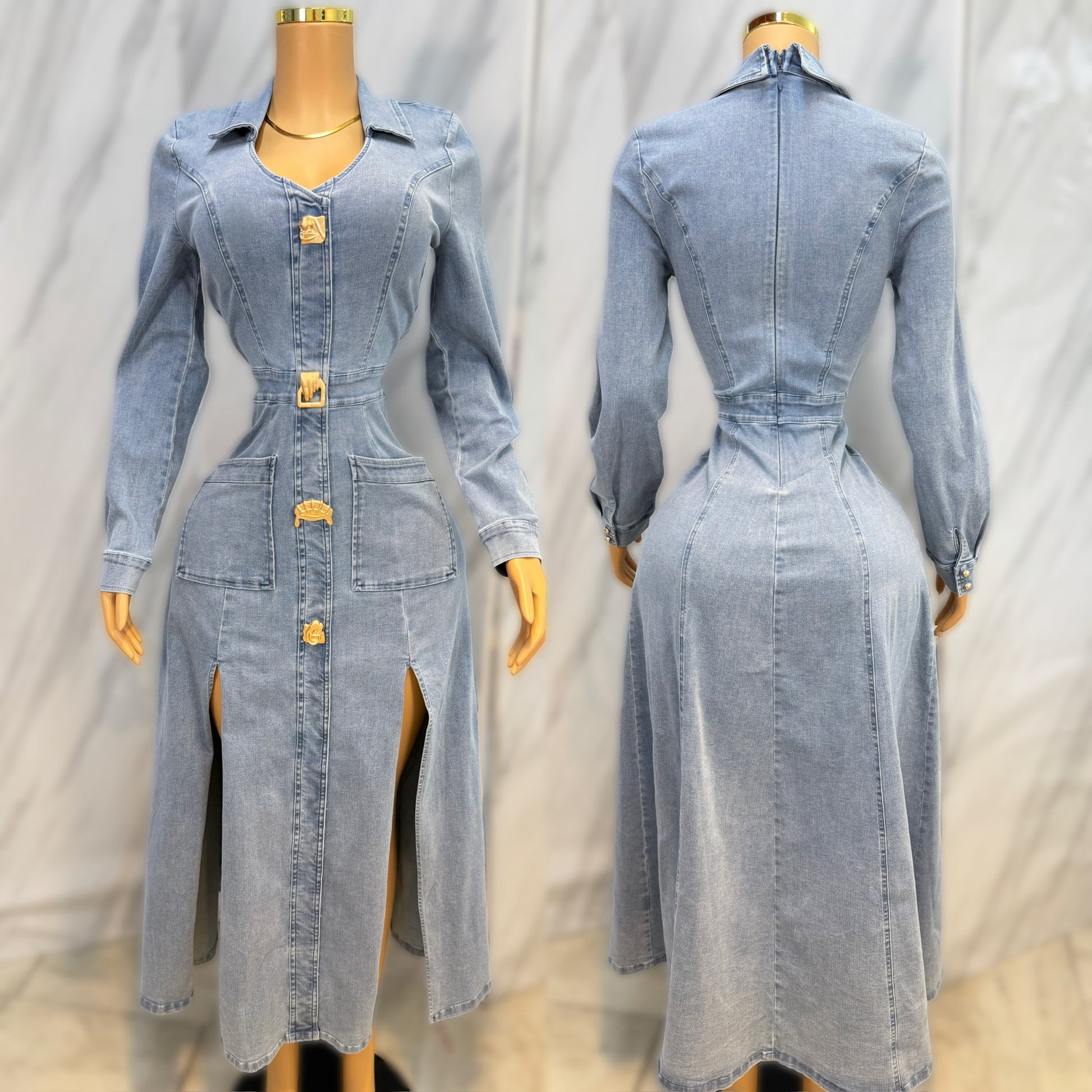 Vestido mezclilla botones dorados 🩵